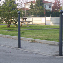 Dissuasore in FE zincato a caldo Composto da: Paletto diam. 7,6. Pomello sferico e basetta in fusione di ghisa EN GJL 200 (UNI EN 1561), fissata in solido al paletto. A richiesta occhielli in acciaio reggi catena. Fissaggio: Fissaggio al piano “0″ mediante prolungamento dell’anima nel suolo per circa 20 cm. Fissaggio per paletto estraibile…